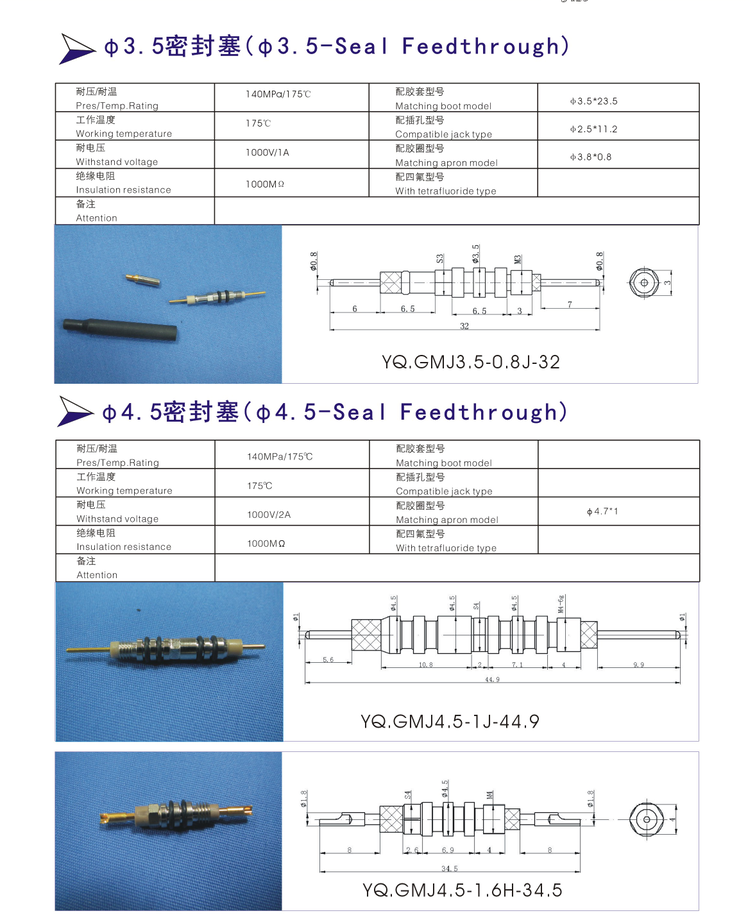 石油探針密封塞,種類多,探針有粗細(xì),長短有多少,采用PEEK進口熱性塑料,耐高溫,粘合性能強,抗腐蝕。