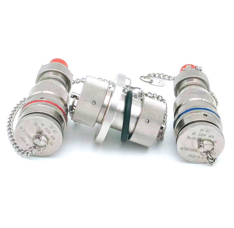 真空密封型穿墻式防爆電連接器,插座是穿墻式,里外連接插頭,自由插拔,維修方便,便于撤卸,注意不要帶電插拔!絕緣體不是普通PPS,采用二氧化硅粉末,高溫融化,達(dá)到和金屬一樣的熔點(diǎn),降溫熔接在一起,增強(qiáng)氣密性,與插頭插合后防水防層,防止火花液體氣體的滲入,杜絕可能得爆炸。