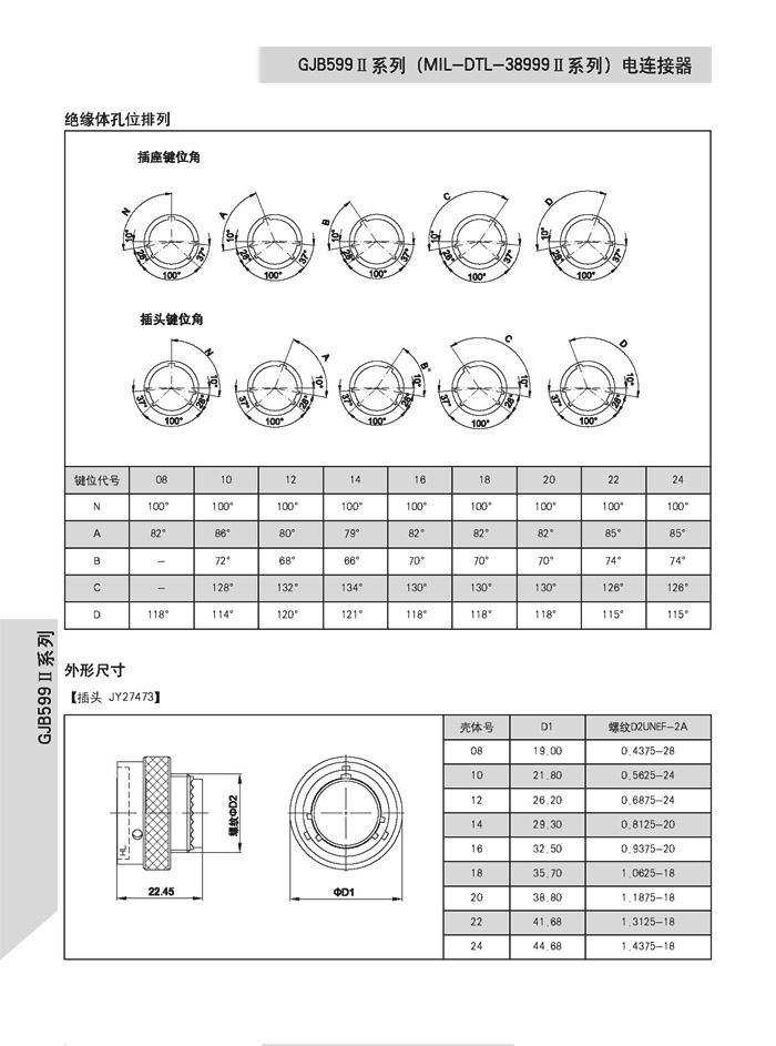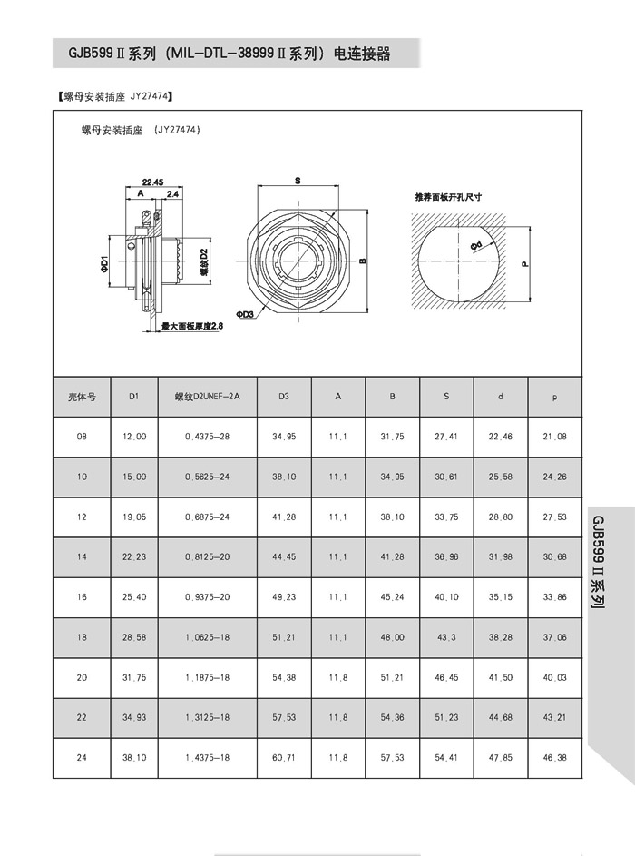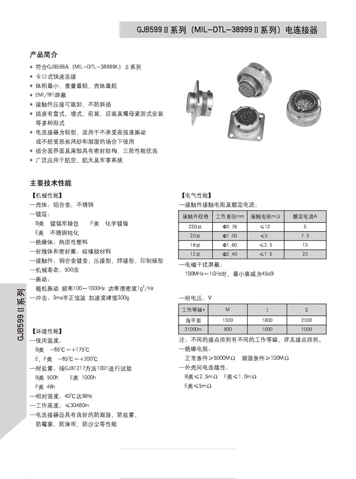 MS27473T14F35SN圓形航空電連接器,參照MIL-DTL-3899KII系列的標(biāo)準(zhǔn),卡口快速連接,種類輕,殼體短,,適用于不承受高強(qiáng)度振動或不經(jīng)受惡劣風(fēng)沙和潮濕的場合。