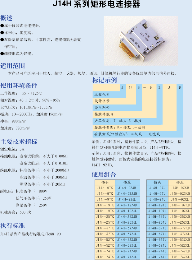 J14H-74ZJB/TJ矩形航空插頭插座,矩形連接器,雙保險(xiǎn)鎖緊結(jié)構(gòu),體積小,密度高,端接形式為焊接.