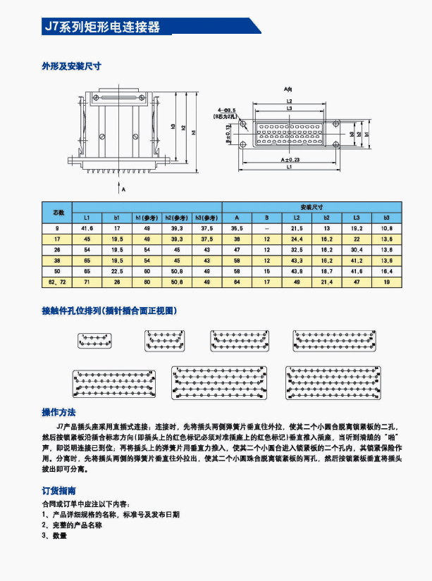 J7-50ZJ/TK矩形航空插頭座適用于各種電子儀器、電氣設(shè)備系統(tǒng)之間的電路連接。該產(chǎn)品為 電子元器件制造廠生產(chǎn)線認(rèn)證合格產(chǎn)品;認(rèn)證采用的國家 標(biāo)準(zhǔn)為GJB 176-86《耐環(huán)境線簧孔矩形電連接器總規(guī)范》。連接方式為直插連接,使用方便,可快速插拔。帶有獨(dú)特的雙重鎖緊機(jī)構(gòu),防雨,外殼屏幕,插座灌膠密封。體積小,重量輕。插孔采用高可靠性能插孔,插拔力小,使用壽命長。