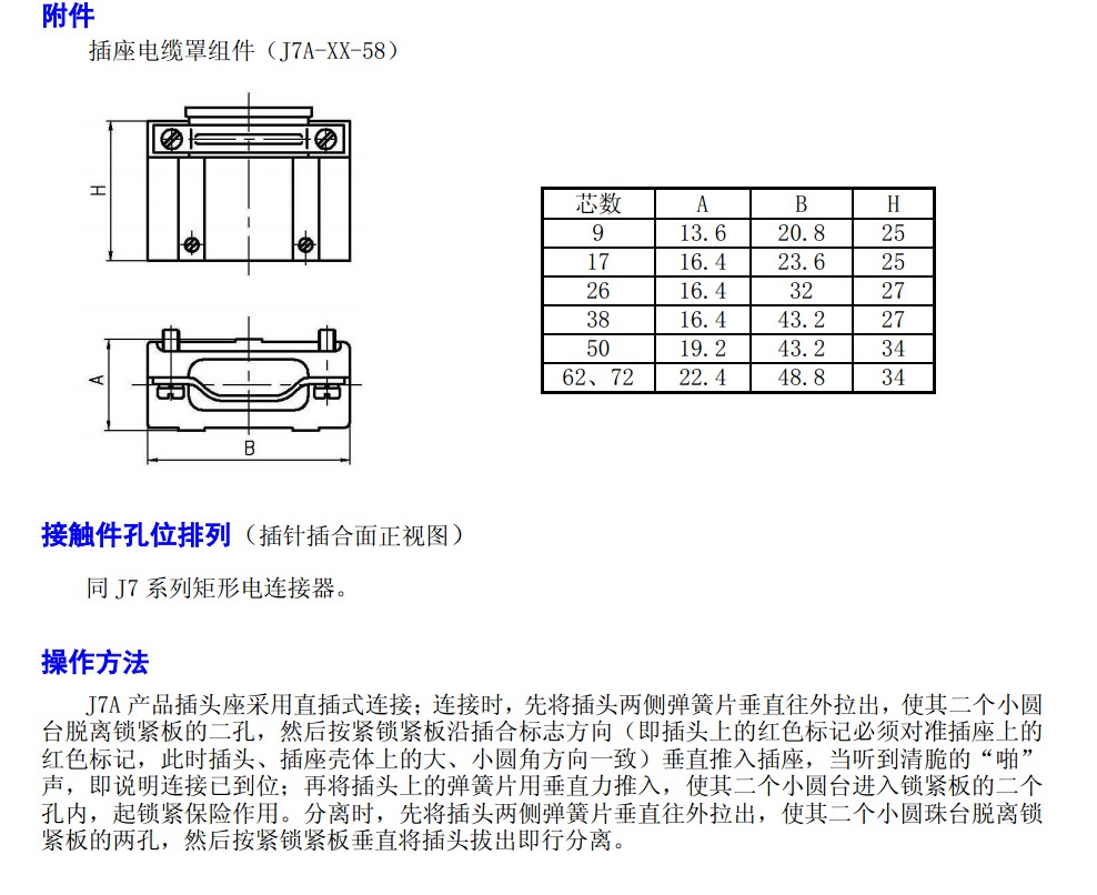 J7A線簧孔矩形電連接器適用于電子、電氣設(shè)備系統(tǒng)之間的電路連接。