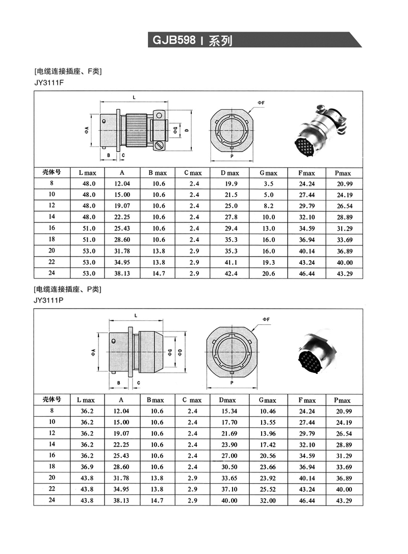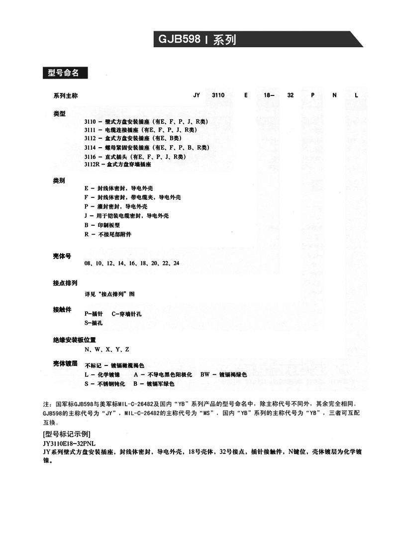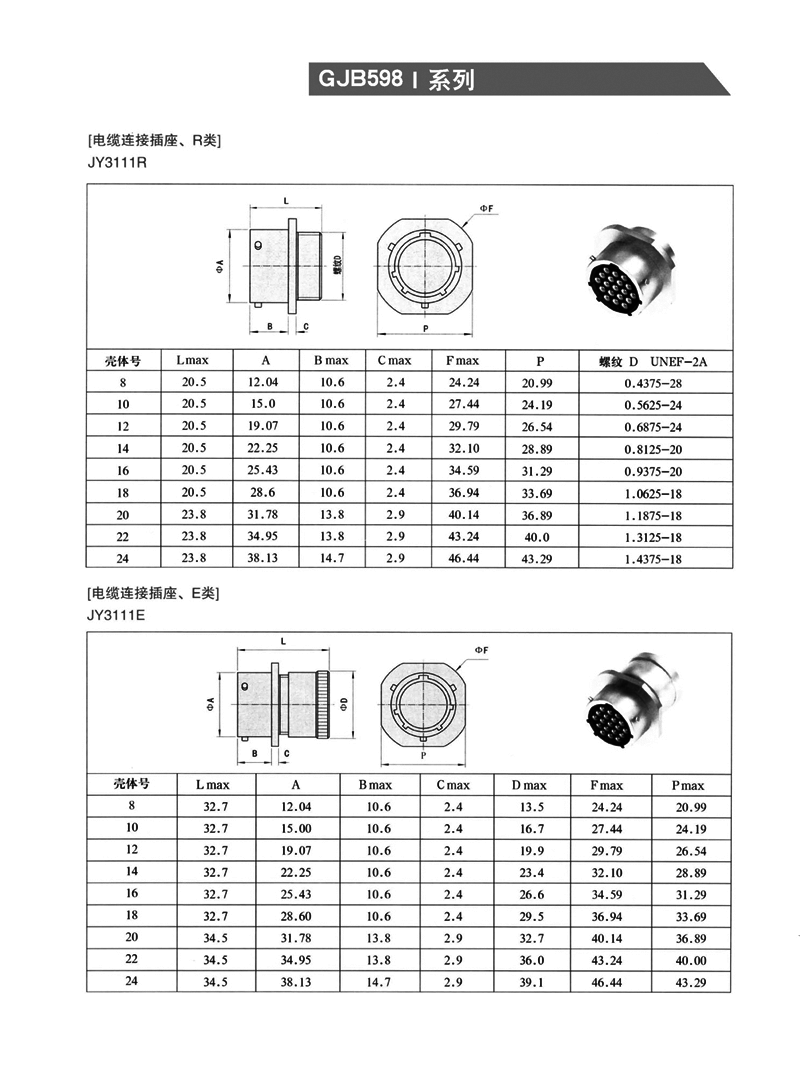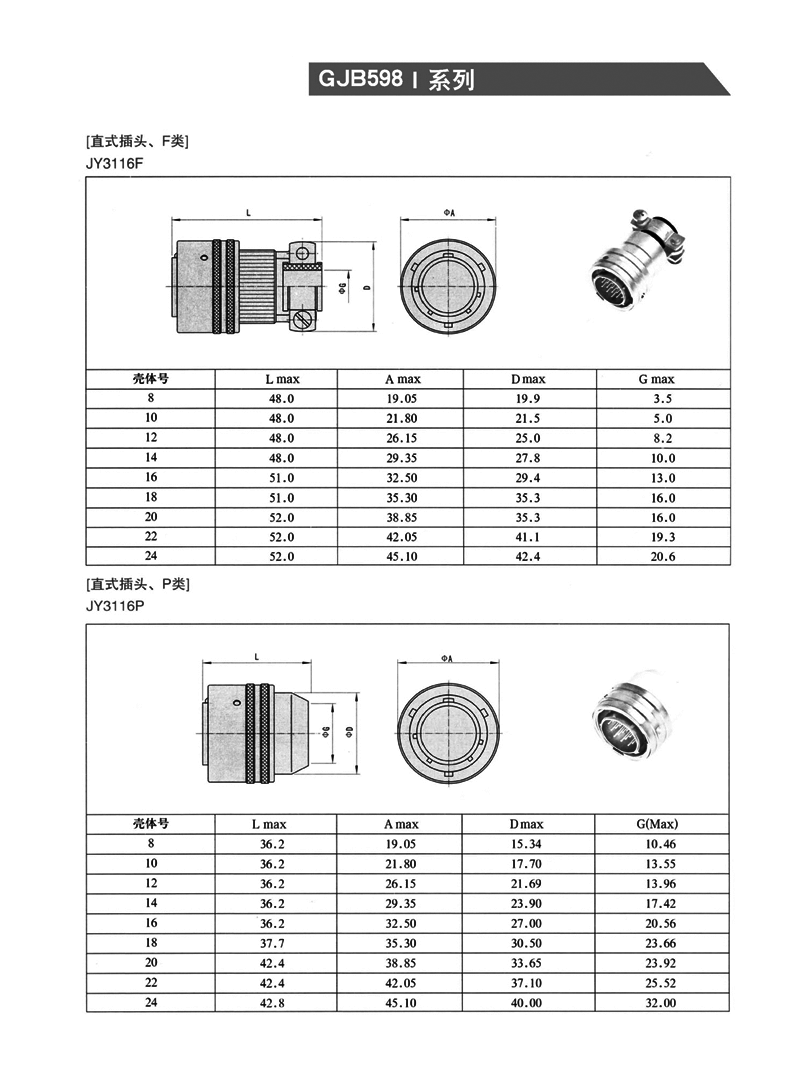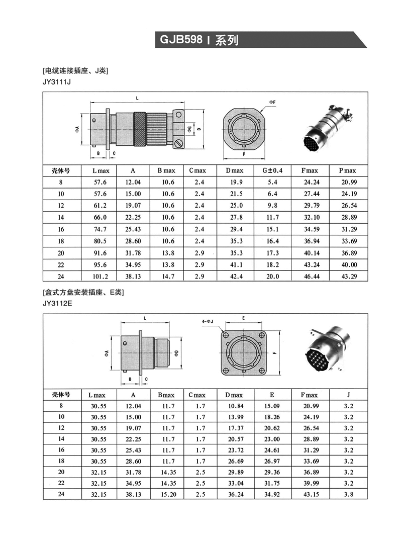 GJB598I系列(JY3116)圓形接插件符合GJB 598(MIL-C-26482) I系列,該系列航空插頭卡口式快速連接,接觸件端接形式為焊接,體積小,密度高,耐環(huán)境好,廣泛適用于各類軍用、民用設(shè)備中 。