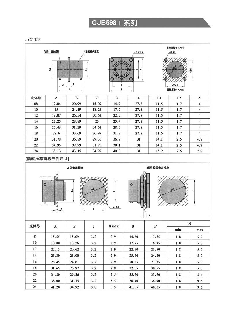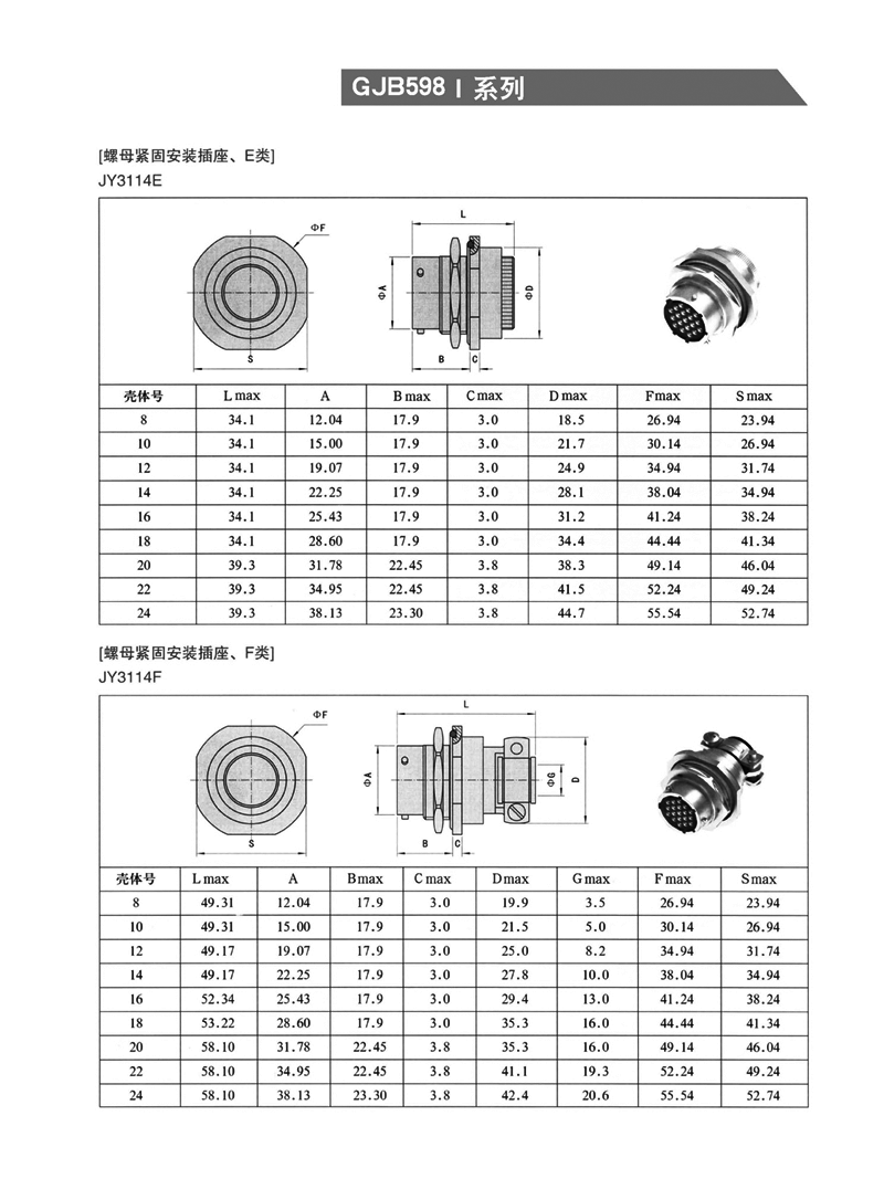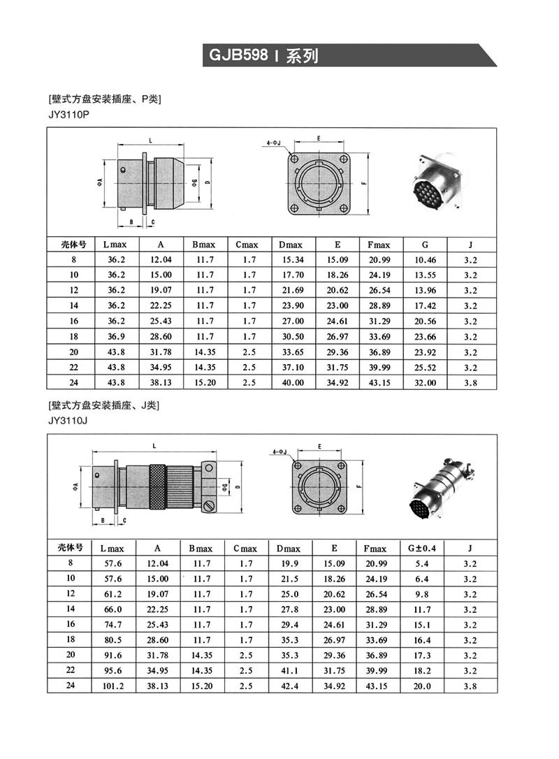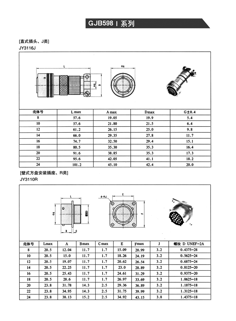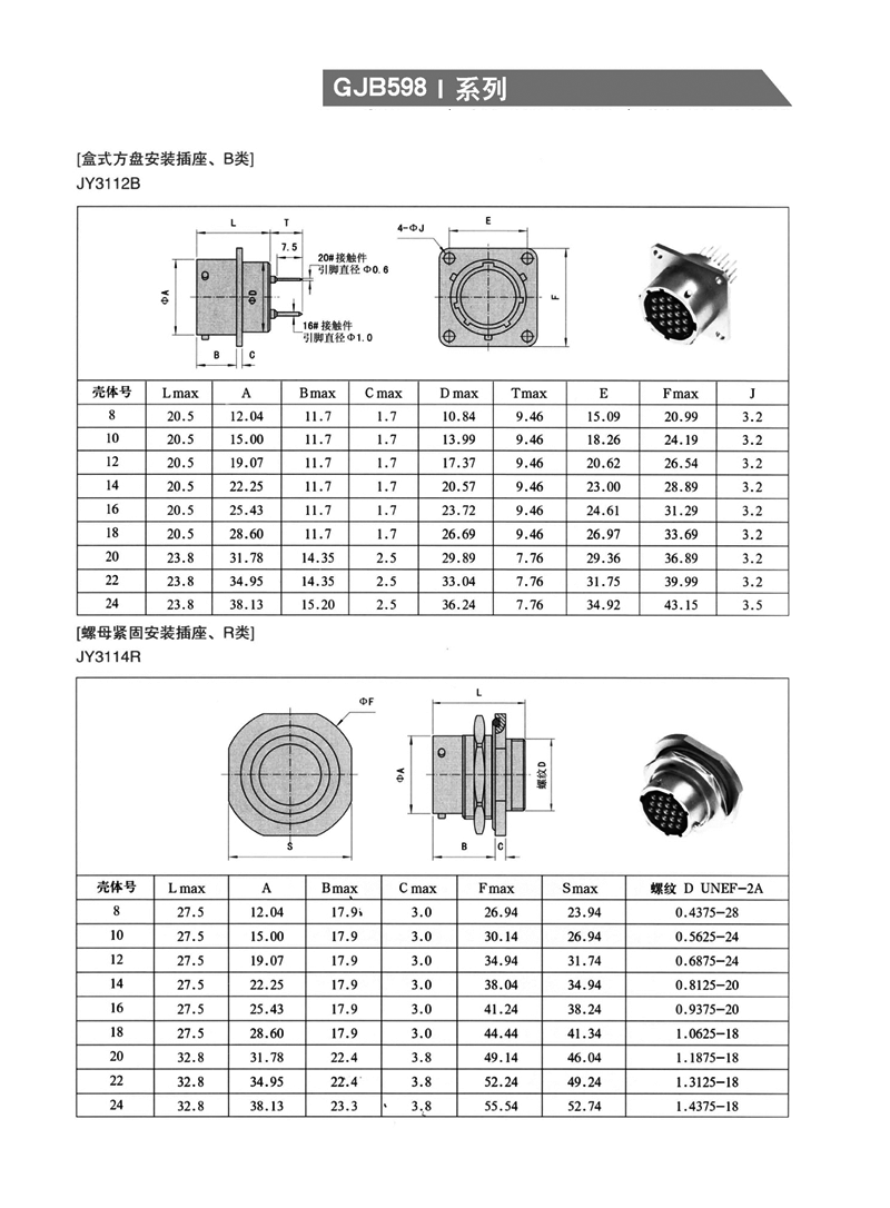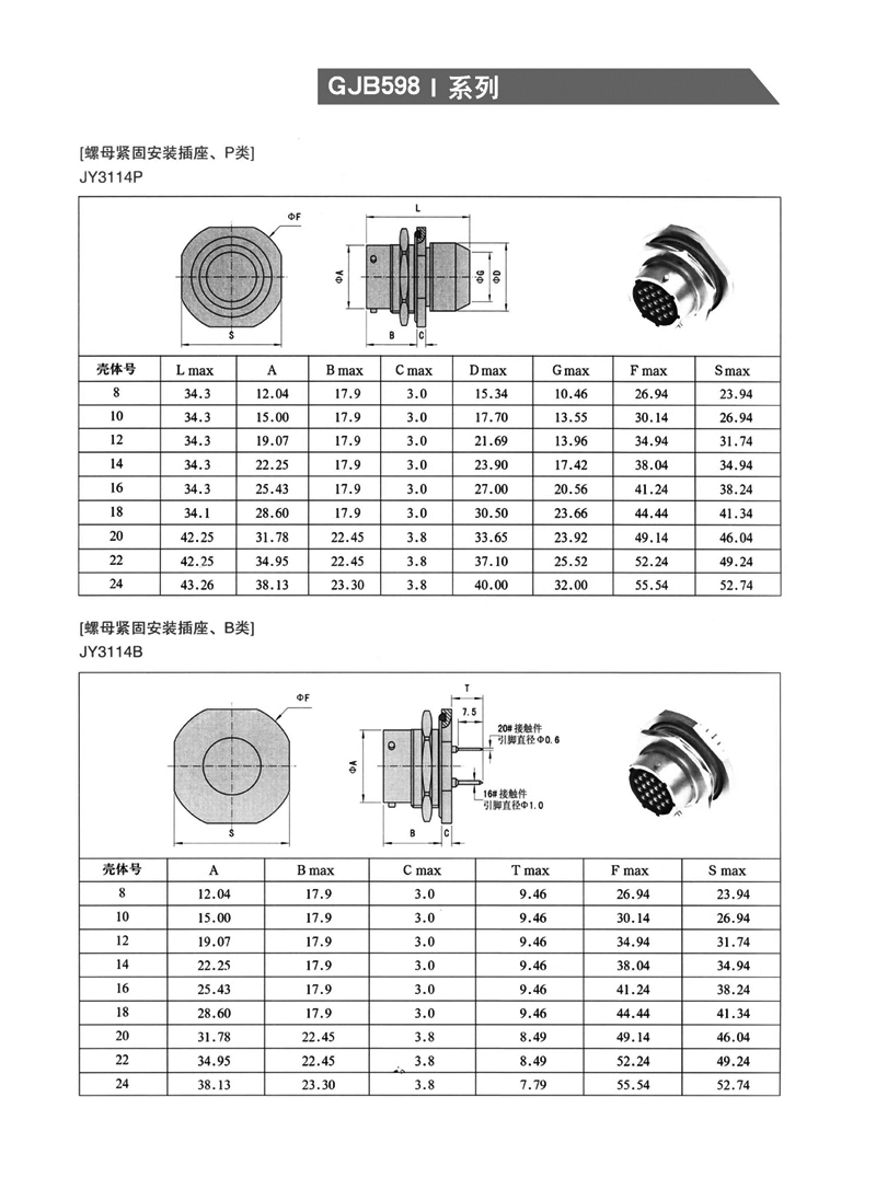 GJB598I系列(JY3116)圓形接插件符合GJB 598(MIL-C-26482) I系列,該系列航空插頭卡口式快速連接,接觸件端接形式為焊接,體積小,密度高,耐環(huán)境好,廣泛適用于各類軍用、民用設(shè)備中 。