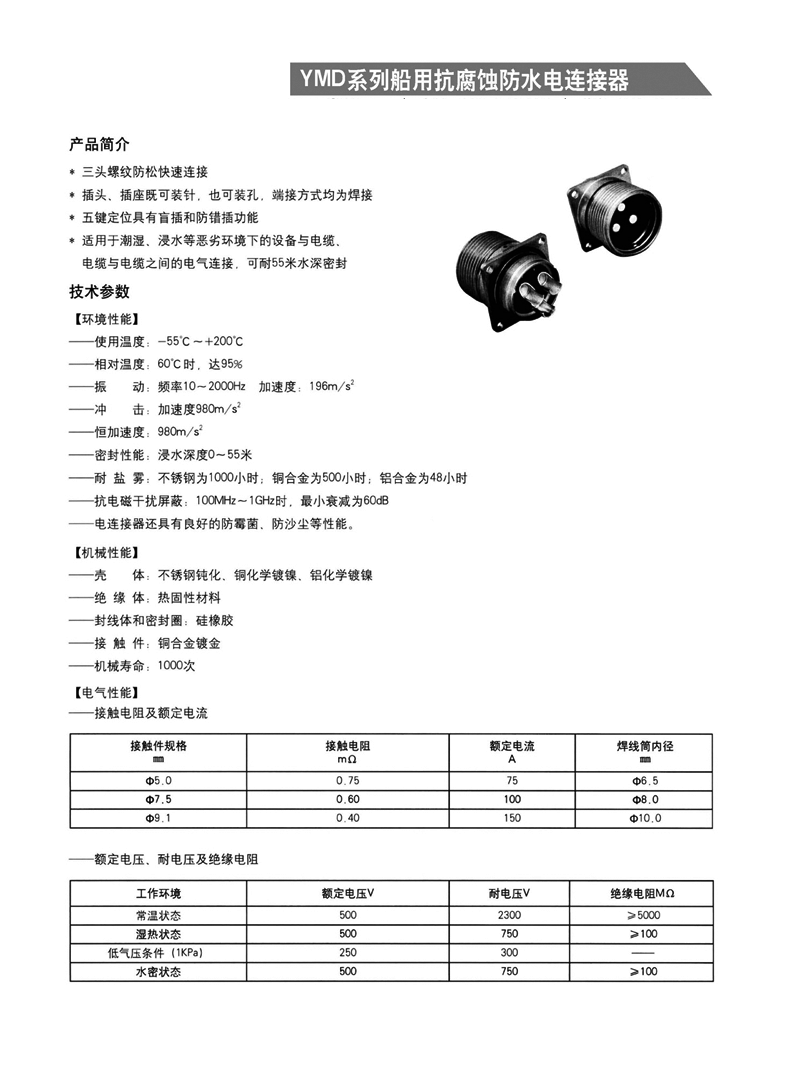 • 上一頁(yè):遼寧YMC系列船用抗腐蝕防水電連接...