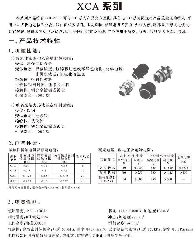 XCA18T4HP1圓形航空插頭,符合GJB2889標(biāo)準(zhǔn),可與XC系列產(chǎn)品完全互配,具備比XC系列航空接插件同規(guī)格產(chǎn)品重量輕的特點,殼體材料為高強度鋁合金,接觸件有后松后卸壓接式,其中插孔為線簧孔,具有插拔柔和、接觸電阻小、防潮、防鹽霧、防霉菌等特性,適用美標(biāo)及國內(nèi)細直徑電線,尾部彎式電纜夾有防轉(zhuǎn)、防積水功能。廣泛應(yīng)用于航空、航天、兵器、艦船、野戰(zhàn)通信等軍事領(lǐng)域,以及郵電通訊、鐵路、計算機和各種儀器、儀表的線路連接。