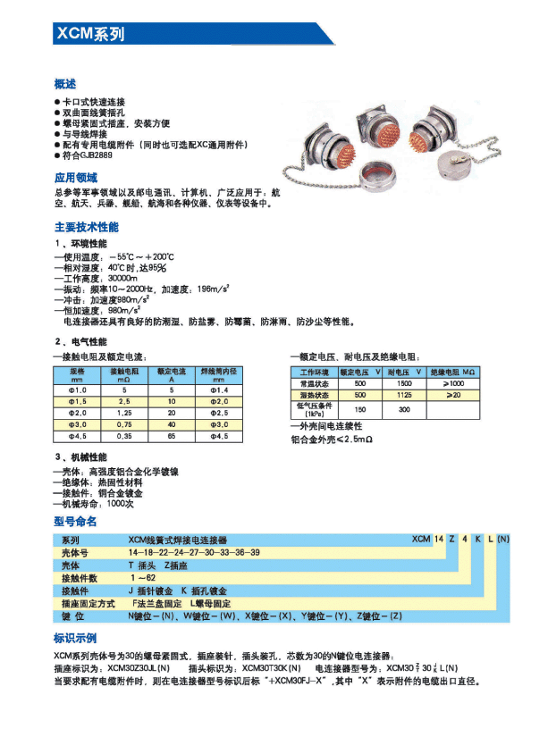 Y55M(XCM)系列螺母拼緊式航空插座,采用卡口式快速連接和分離;雙曲面線簧插孔,插拔柔和;螺母緊固式插座,安裝方便;接觸件為焊接式,配有專(zhuān)用電纜附件;同時(shí)也可選配XC通用附件,符合GJB2889標(biāo)準(zhǔn)。廣泛應(yīng)用于航空、航天、兵器、艦船、總參等軍事領(lǐng)域以及郵電通訊、計(jì)算機(jī)、航海和各種儀器、儀表等設(shè)備中。