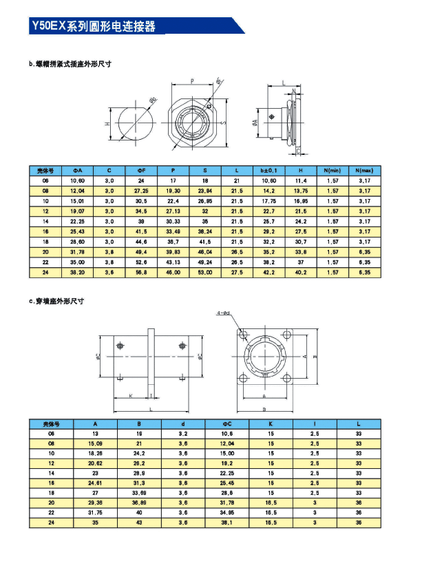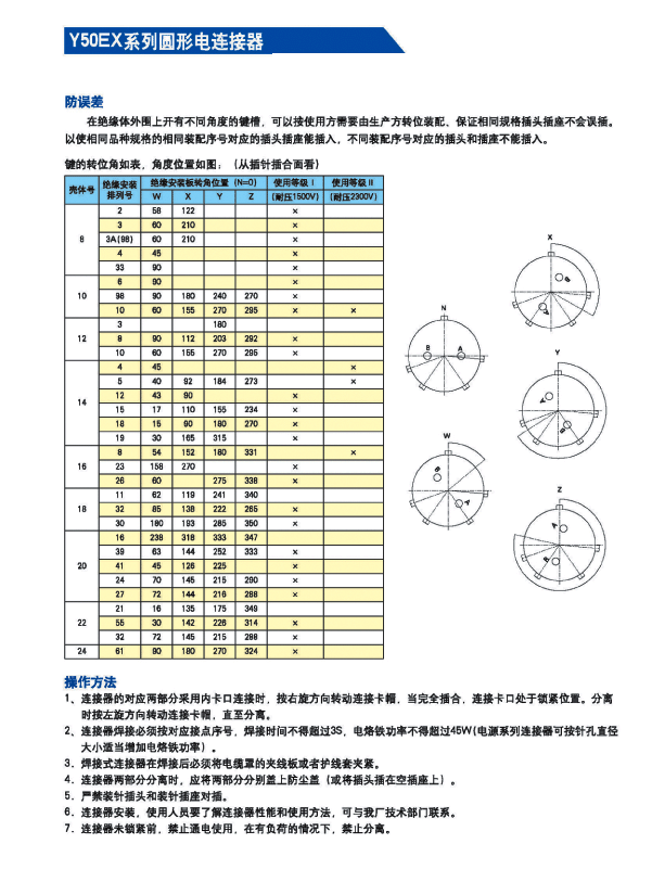 Y50EX系列圓形電連接器采用卡口式連接系統(tǒng),具有快速控接和快速分離,體積小、重量輕等特點。插頭有多種電纜安裝形式,即:電纜夾線板式、簡易封裝式、接地壓緊式、防波抗拉式、彎頭護線式、電纜話筒式和彈簧護線式等。電纜出線口備有各種規(guī)格不同的密封橡膠護線縣,能與電纜線緊密配接,增強了電纜線和連接器插頭的防雨、防水、防塵密封性和抗拉性能。接觸件焊接,殼體有屏蔽和非屏蔽以及多種鍍層可選,插座有一般密封和玻璃燒結(jié)密封等類觀,以適用不同的工作環(huán)境。Y50EX圓形電連接器適用于戰(zhàn)略戰(zhàn)術(shù)系統(tǒng),電子對抗系統(tǒng),野外作業(yè)電能,通訊信號連接系統(tǒng),航大航空航海通訊和測試跟蹤系統(tǒng),計算機系統(tǒng)、郵電鐵路指揮系統(tǒng),進口醫(yī)療儀器設(shè)備等電能、電訊信號的近接。