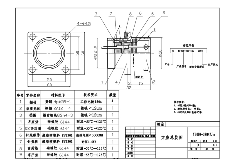 氣 密 性:普通密封插座空氣泄漏率:≤6×10-2Pal/s
