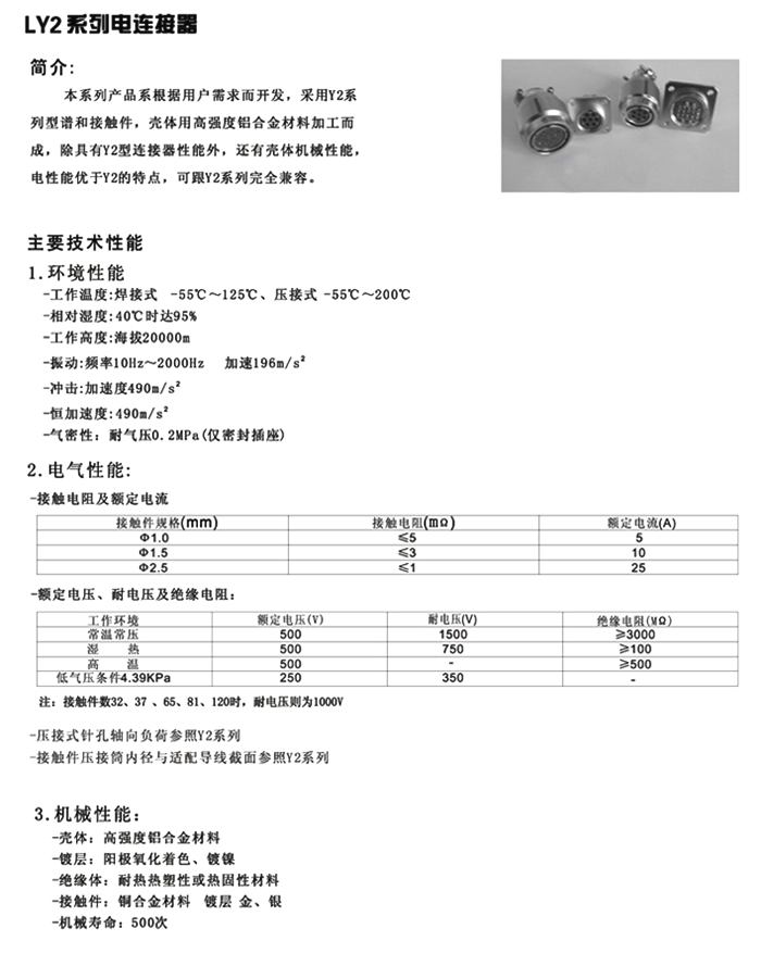 LY2系列航空電連接器(航空插頭),根據(jù)用戶需求開發(fā),采用Y2系列型譜和接觸件,殼體用高強度鋁合金材料開發(fā)加工而成,除具有Y2型連接器性能外,還有殼體機械性能,電性能優(yōu)于Y2的特點,可跟Y2系列完全兼容。